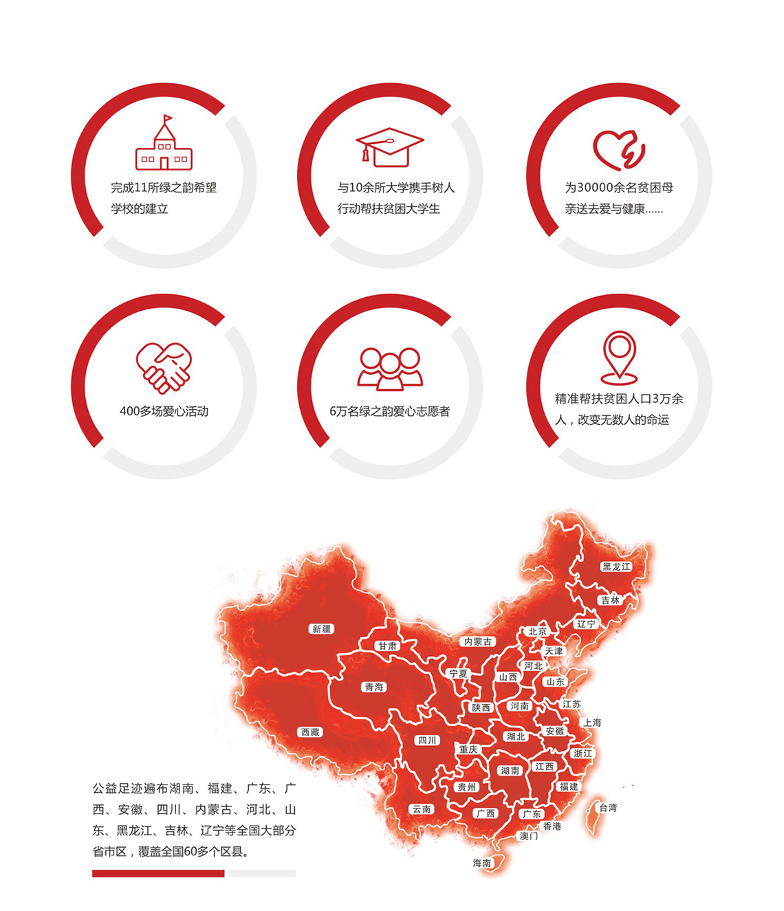 綠之韻公益基金會(huì)陸續(xù)投入1000萬元開展綠之韻樹人行動(dòng)——以大學(xué)生影響小學(xué)生,開展“精神扶貧、勵(lì)志教育”活動(dòng),首先在選定的大學(xué)里以現(xiàn)金的形式資助困難大學(xué)生,受資助大學(xué)生后期受邀到綠之韻希望小學(xué)進(jìn)行志愿支教活動(dòng),搭建起大學(xué)生與綠之韻……