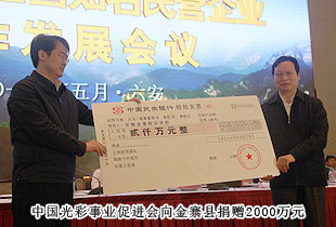 踐行光彩精神,助力老區(qū)發(fā)展。2013年5月9日上午,由中國光彩事業(yè)促進(jìn)會、中華全國工商業(yè)聯(lián)合會與安徽省人民政府聯(lián)合舉辦的“中國光彩事業(yè)六安行暨安徽省與全國知名民營企業(yè)合作發(fā)展會議”在安徽省六安市召開。本次大會旨在光大光彩事業(yè)、搭建合作平臺,推進(jìn)大別山片區(qū)扶貧攻堅,深化安徽與全國知名民營企業(yè)合作。會上,中國光彩事業(yè)促進(jìn)會現(xiàn)場向金寨縣捐贈2000萬元,全省各地市與多家企業(yè)現(xiàn)場集中簽約項(xiàng)目228個,投資規(guī)模3485億元。