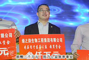 為表彰先進,激勵更多的非公有制企業(yè)參與到湖南省扶貧濟困的光彩事業(yè)中來,經湖南省委統(tǒng)戰(zhàn)部、省工商聯(lián)、省光彩事業(yè)促進會研究決定,本次大會光榮授予綠之韻集團等36家企業(yè)“湖南省光彩事業(yè)貢獻獎”榮譽稱號。同時,會議還舉辦了“中國夢?湘商情?光彩行湖南光彩事業(yè)全新啟動儀式”,現(xiàn)場企業(yè)家積極響應捐贈光彩基金,胡國安董事長代表綠之韻集團現(xiàn)場捐贈3000萬元,并代表所有捐贈方接受學生代表親手書寫的飽含真情與感恩的感謝信,湖南省人民政府副省長、省工商聯(lián)主席何報翔接受捐贈。在啟動儀式上,綠之韻集團董事長胡國安等55家企業(yè)代表以舉牌的形式向公眾鄭重承諾,從2013年至2018年將為光彩事業(yè)公益慈善捐贈11.667億元,項目投資55.6億元。第九、十屆全國人大常委會副委員長成思危,省領導陳求發(fā)、易煉紅、何報翔、賴明勇等共同見證。