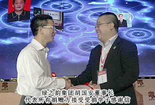 綠之韻集團胡國安董事長本次大會期間接受媒體采訪時表示,光彩事業(yè)是一項以扶貧開發(fā)為主題的光榮事業(yè)。綠之韻一直積極承擔企業(yè)的社會責任,通過參與各類公益慈善活動回報社會。希望通過自身的作為能夠帶動更多的企業(yè)、更多的人關心、關注、關愛社會弱勢群體。綠之韻愿同各企業(yè)團體,積極探索社會慈善與自身扶貧濟困、利益人群、服務社會優(yōu)良傳統(tǒng)相結合的方式,為和諧社會的建設作出更大的貢獻!