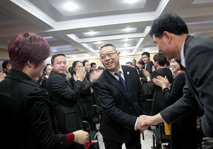 2013年3月16日—17日,綠之韻河北分公司人頭攢動(dòng)、特別熱鬧,因?yàn)榧瘓F(tuán)董事長胡國安率營銷中心(中國區(qū))業(yè)務(wù)總經(jīng)理何健等一行親臨分公司考察指導(dǎo)工作,河北各地區(qū)營銷伙伴紛紛匯聚于此,與胡國安董事長運(yùn)籌帷幄,共話未來,決勝十年。
