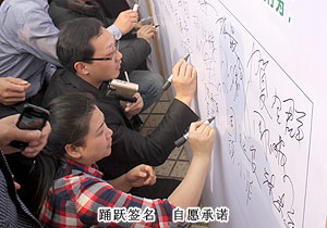 2013年,是綠之韻集團(tuán)創(chuàng)立十周年,也是品牌和服務(wù)競(jìng)爭(zhēng)加劇的一年,更是思想上同心同德、目標(biāo)上同心同向、行動(dòng)上同心同行的關(guān)鍵之年。在現(xiàn)場(chǎng)觀眾目光的凝視下,綠之韻集團(tuán)執(zhí)行總經(jīng)理龔振帶領(lǐng)公司高管和廣大經(jīng)銷商在《行業(yè)自律、規(guī)范經(jīng)營(yíng)承諾書》展板上簽名,自愿承諾:“在市場(chǎng)經(jīng)營(yíng)過(guò)程中,嚴(yán)格遵照國(guó)家相關(guān)法律、法規(guī)進(jìn)行合法經(jīng)營(yíng),堅(jiān)決遵照?qǐng)?zhí)行《綠之韻集團(tuán)營(yíng)業(yè)守則》及各項(xiàng)規(guī)章制度,規(guī)范運(yùn)作;堅(jiān)決杜絕一切破壞市場(chǎng)良性經(jīng)營(yíng)的違規(guī)行為,如有違反自覺(jué)接受處罰!”莊嚴(yán)承諾激蕩人心,有條不紊的簽名行動(dòng)充分展示出全體綠之韻人對(duì)市場(chǎng)規(guī)范經(jīng)營(yíng)的決心,給予了市場(chǎng)穩(wěn)健發(fā)展強(qiáng)大的動(dòng)力,讓廣大消費(fèi)者充分感受民族直銷企業(yè)高度的公信力和社會(huì)責(zé)任感。