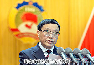 受政協(xié)湖南省第十屆委員會(huì)常務(wù)委員會(huì)的委托,湖南省政協(xié)副主席武吉海向大會(huì)作了工作報(bào)告。報(bào)告全面回顧總結(jié)了十屆省政協(xié)5年來(lái)的主要工作成績(jī):服務(wù)科學(xué)發(fā)展作出了積極貢獻(xiàn);推進(jìn)民主政治建設(shè)發(fā)揮了獨(dú)特作用;促進(jìn)民生改善取得了明顯成效;鞏固和發(fā)展了愛(ài)國(guó)統(tǒng)一戰(zhàn)線(xiàn);政協(xié)自身建設(shè)邁上新臺(tái)階。武吉海指出,十一屆省政協(xié)所處的5年,是我國(guó)全面建成小康社會(huì)的關(guān)鍵5年,也是人民政協(xié)大有作為的重要時(shí)期。要圍繞中共十八大提出的宏偉目標(biāo)和省第十次黨代會(huì)提出的各項(xiàng)任務(wù),堅(jiān)持和完善“維護(hù)核心、服務(wù)中心、凝聚人心、加強(qiáng)自身建設(shè)”的工作思路,切實(shí)履行政協(xié)職能,為更好地推進(jìn)“四化兩型”建設(shè)、全面建成小康湖南而努力奮斗。