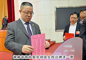 綠之韻集團(tuán)董事長(zhǎng)胡國(guó)安,繼擔(dān)任省十屆政協(xié)委員之后再次當(dāng)選省十一屆政協(xié)委員。承載著7100萬(wàn)三湘兒女的期盼和重托,胡國(guó)安委員同來(lái)自全省各族各界、各條戰(zhàn)線(xiàn)的700多名省政協(xié)委員一起齊聚長(zhǎng)沙,積極履行政治協(xié)商、民主監(jiān)督、參政議政職能,共商科學(xué)發(fā)展、富民強(qiáng)省大計(jì),并同其他省政協(xié)委員一起集體列席了湖南省十二屆人大一次會(huì)議開(kāi)幕式。