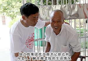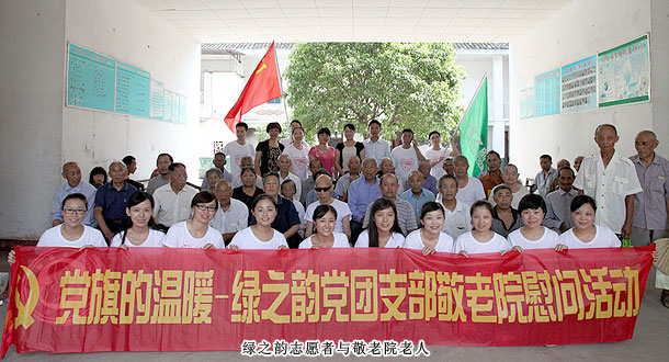 2012年8月3日上午,綠之韻黨支部又攜手瀏陽市洞陽鎮(zhèn)政府舉辦了主題為“黨旗的溫暖”的敬老院慰問活動,綠之韻集團董事常務(wù)副總裁勞嘉、黨支部書記許達仲帶領(lǐng)20名綠之韻黨團員代表、綠之韻愛心志愿者來到洞陽鎮(zhèn)敬老院看望孤寡老人,為老人們送上愛心物資和關(guān)懷。
