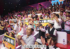 在節(jié)目現(xiàn)場,綠之韻集團(tuán)胡國安董事長代表全體綠之韻愛心代表分兩次共計捐贈20萬元善款用于定向資助綠之韻安化大橋希望學(xué)校購買快樂校車。據(jù)了解,綠之韻安化大橋希望小學(xué)地處全國集中連片貧困地區(qū)——武陵山片區(qū),國家級貧困縣——安化縣,是一所典型的山區(qū)農(nóng)村學(xué)校。早在2006年,綠之韻就曾出資為學(xué)校捐建校舍、食堂。目前,學(xué)?,F(xiàn)有18個教學(xué)班,學(xué)生880余人,教師53人。學(xué)生來自冷市鎮(zhèn)大橋管區(qū)(原大橋鄉(xiāng))13個行政村,半數(shù)以上的學(xué)生家里離學(xué)校在5公里以上,部分學(xué)生距學(xué)校在10公里以上,少數(shù)學(xué)生家里離學(xué)校達(dá)20公里。學(xué)生上下學(xué)時,絕大部分只能步行、搭乘摩托車、農(nóng)用車、改裝車,而且十分擁擠。有時,一臺摩托車搭載4至5名學(xué)生,這些情景讓老師家長提心吊膽,但又無能為力。特別是刮風(fēng)下雨的天氣,許多家里的小孩因為父母外出打工,都是年邁的爺爺奶奶坐著家用三輪車接送,非常不方便。學(xué)生居住分散,走讀生最遠(yuǎn)的離學(xué)校20多公里,每天上下學(xué)除了走路,就是坐摩托車或三輪車,非常不安全。這樣的情況,也深深牽動著胡國安董事長的心,能為學(xué)校再解決孩子們上下學(xué)難的問題,也是他一直牽掛的心愿。
