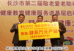 啟動儀式上,綠之韻集團副總經(jīng)理何健代表綠之韻慈善基金向長沙市老齡委捐贈40萬元產(chǎn)品,為老人送上關(guān)愛與溫暖。綠之韻集團執(zhí)行總經(jīng)理龔振表示:綠之韻堅持以社會公益為己任,并大力展開“尋找百歲老人”“健康社區(qū)行”“健康大講堂”等公益活動,積極承擔社會責任,此次全體綠之韻人要以敬老愛老助老活動為契機,弘揚中華民族“老吾老以及人之老”的傳統(tǒng)美德,號召全社會關(guān)注老人健康,關(guān)愛老人生活。會上,綠之韻集團憑借在老年公益慈善行動中的突出貢獻被評為“長沙市老年健康事業(yè)共建單位”;集中華五千年養(yǎng)生文化之大成的“清調(diào)補衡”綠之韻養(yǎng)生套盒被指定為“老年人健康養(yǎng)生專用產(chǎn)品”;綠之韻集團董事長胡國安被授予“崇德積善慈父孝子為人先,弘揚孝道敬老愛親我做起”榮譽匾牌,長沙市老齡委副主任、市民政局黨委委員楊為錦、廖肇聯(lián)為綠之韻集團頒發(fā)榮譽。楊為錦表示:綠之韻為推動老齡健康事業(yè)發(fā)展積極奉獻,是敬老愛老助老的模范企業(yè),希望未來能繼續(xù)發(fā)揮企業(yè)優(yōu)勢,讓更多老年人安享健康、幸福的晚年。