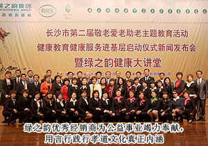 2012年4月17日,由綠之韻集團與長沙市老齡委共同舉辦的長沙市第二屆敬老愛老助老活動啟動儀式在長沙市人民政府隆重舉行。原中共長沙市委副書記張慧明,原長沙市人大主任、市老齡委顧問楊宏,原長沙市人大副主任、市老齡委顧問劉湘皋,湖南省老齡委辦公室副主任李永勝、劉憲銘,長沙市老齡委常務(wù)副主任、市民政局局長曹再興,長沙市老齡委副主任、市民政局黨委委員楊為錦,長沙市老齡委副主任、辦公室主任廖肇聯(lián)等蒞臨指導(dǎo),長沙市工商行政管理局、財政局、科學技術(shù)局等50家合作政府機關(guān)、企業(yè)代表與綠之韻優(yōu)秀經(jīng)銷商張建軍、黃翔、李正元等共計1300余人參加了啟動儀式。