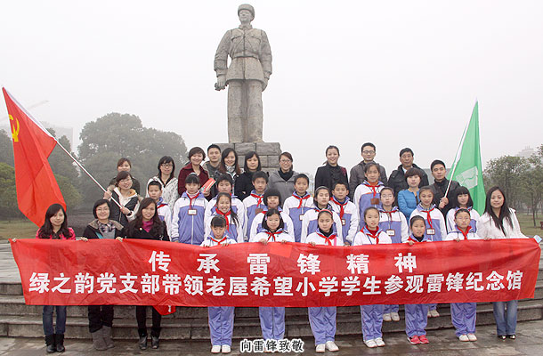 陽春三月,是向雷鋒同志學(xué)習(xí)的日子。為更好地將雷鋒精神發(fā)揚(yáng)光大,2012年3月19日,綠之韻黨支部帶領(lǐng)綠之韻老屋希望小學(xué)學(xué)生參觀了位于望城縣雷鋒鎮(zhèn)的湖南雷鋒紀(jì)念館,與孩子們共同了解雷鋒、走近雷鋒、學(xué)習(xí)雷鋒,爭做雷鋒精神傳人。綠之韻國際大酒店貴賓樓執(zhí)行總經(jīng)理刁琳、綠之韻集團(tuán)黨支部書記許達(dá)仲參加了此次活動。