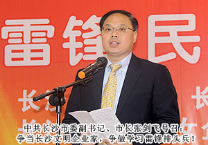 中共長(zhǎng)沙市委副書記、市長(zhǎng)張劍飛在會(huì)上表示,希望廣大工商界人士、女企業(yè)家要切實(shí)增強(qiáng)歷史使命感和發(fā)展緊迫感,爭(zhēng)當(dāng)長(zhǎng)沙文明企業(yè)家,爭(zhēng)做學(xué)習(xí)雷鋒排頭兵,以雷鋒為榜樣,自覺地把個(gè)人發(fā)展與全市經(jīng)濟(jì)社會(huì)發(fā)展結(jié)合起來,把個(gè)人富裕與全市人民共同富裕結(jié)合起來,堅(jiān)定信心,搶抓機(jī)遇,乘勢(shì)而上,以實(shí)際行動(dòng)促進(jìn)我市非公有制經(jīng)濟(jì)蓬勃發(fā)展,開創(chuàng)我市工商界人士學(xué)習(xí)雷鋒精神的嶄新篇章。同時(shí),張劍飛要求全市工商界人士要學(xué)習(xí)雷鋒同志的實(shí)干精神,搶抓機(jī)遇,加快企業(yè)轉(zhuǎn)型升級(jí);要學(xué)習(xí)雷鋒同志的“釘子”精神,刻苦學(xué)習(xí),不斷提升自身素質(zhì);要學(xué)習(xí)雷鋒同志的“傻子”精神,努力奉獻(xiàn),積極承擔(dān)社會(huì)責(zé)任。