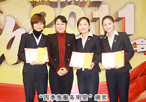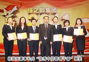 會(huì)議最激動(dòng)人心的時(shí)刻屬頒獎(jiǎng)環(huán)節(jié),為表彰過(guò)去一年里兢兢業(yè)業(yè)、踏實(shí)肯干、辛勤付出的優(yōu)秀員工,“四季度服務(wù)明星”“優(yōu)秀服務(wù)集體”“年度優(yōu)秀職員”“年度優(yōu)秀基層管理干部”“年度優(yōu)秀中層管理干部”等獎(jiǎng)項(xiàng)相繼頒發(fā)。同時(shí),通過(guò)全體同事的投票選舉,“陽(yáng)光天使”獎(jiǎng)項(xiàng)首次頒發(fā),樂(lè)于助人、團(tuán)結(jié)同事的辦公室李倩婷榮獲該稱(chēng)號(hào)。透過(guò)每一位獲獎(jiǎng)代表的分享,他們的工作態(tài)度:忠誠(chéng)、敬業(yè)和專(zhuān)業(yè),無(wú)不讓人心生敬意。胡國(guó)安董事長(zhǎng)在總結(jié)發(fā)言中表示:感謝每一位員工不離不棄的追隨,在綠之韻邁入第九個(gè)發(fā)展年頭之際,要向每一位同仁道一聲誠(chéng)摯的感謝。綠之韻在2011年從各方面夯實(shí)著基礎(chǔ),為2012年的突破做好了充足的準(zhǔn)備,“蓄”為積淀,“力”為爆發(fā),只要全體綠之韻人上下一心,同心同步,我們定能龍騰海天,再創(chuàng)新高!