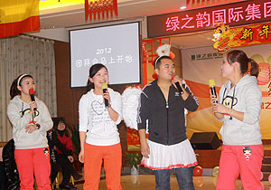 新春團(tuán)拜會(huì)是綠之韻每一位員工年終狂歡的舞臺(tái),集團(tuán)領(lǐng)導(dǎo)、分公司、下屬基地的代表們歡聚一堂,各部門(mén)全員參與,準(zhǔn)備了幽默的小品、創(chuàng)意的整蠱、歡動(dòng)的舞蹈及各類(lèi)令人捧腹的節(jié)目,熱熱鬧鬧迎新春!龍騰虎躍2012,我們來(lái)了!