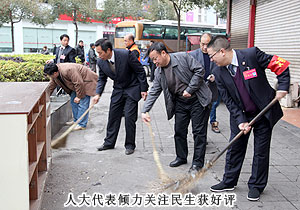 綠之韻集團(tuán)胡國安董事長作為瀏陽市第十五屆人大代表認(rèn)真聽取了相關(guān)工作報告,并與來自全市各條戰(zhàn)線的人大代表圍繞提交大會的議案、建議、意見展開討論,城市管理、環(huán)境保護(hù)、扶貧幫困、三農(nóng)問題等一系列涉及社情民意的話題,成為人大代表熱切關(guān)注的焦點(diǎn)。會議期間,人大代表們更深入街區(qū),做起了交通文明督導(dǎo)和道路清潔工,融入社會關(guān)注民生。