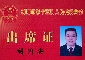 2011年12月26日,瀏陽市第十五屆人民代表大會第六次會議在歐陽予倩大劇院隆重開幕。瀏陽市人民政府市長曹立軍、中共瀏陽市委副書記吳震、瀏陽市政協(xié)主席魯建文、中共瀏陽市委常委、紀(jì)委書記黃陽等各級領(lǐng)導(dǎo)出席會議。瀏陽市第十五屆人大代表、綠之韻集團(tuán)董事長胡國安出席,與來自全市各地的近400名人大代表共同為瀏陽市的發(fā)展建言獻(xiàn)策。