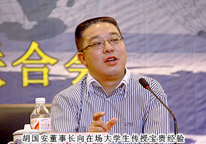 此外,胡總還為在座的委員及學(xué)生免費(fèi)贈送書籍《財(cái)富第六波》,向大家展示了新型創(chuàng)業(yè)方式,以啟迪在座大學(xué)生在未來的發(fā)展道路上注重創(chuàng)新。在場的一位大學(xué)生,捧著這本書認(rèn)真翻看:“本來我對自己將來從事什么行業(yè)還沒有一個清晰的認(rèn)識和定位,但參加活動,我得到了很多啟發(fā)?!痹诼犕旰鷩捕麻L及其它青聯(lián)委員的報(bào)告后,有同學(xué)表示:“企業(yè)家的報(bào)告挺精彩的,雖然有些方面現(xiàn)在還不能夠完全聽明白,但我認(rèn)為只要能記住幾句話,就可以對自己產(chǎn)生很大的影響。”