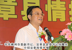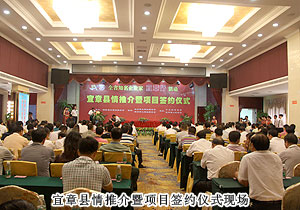 考察中,企業(yè)家們參觀了宜鳳高速、宜章大道及宜章產(chǎn)業(yè)承接園等項(xiàng)目,聽取了宜章縣情推介報告后,宜章區(qū)域優(yōu)越、交通便捷、資源豐富等優(yōu)良的投資環(huán)境獲得了企業(yè)家們的稱贊。在項(xiàng)目簽約儀式中,共8個涉及現(xiàn)代服務(wù)業(yè)、現(xiàn)代農(nóng)業(yè)和基礎(chǔ)設(shè)施建設(shè)等多個領(lǐng)域的項(xiàng)目正式簽約,合同金額達(dá)11.39億元人民幣。湖南省政協(xié)副主席、省工商聯(lián)主席何報翔指出,“全省知名企業(yè)家宜章行”活動為加快縣域經(jīng)濟(jì)發(fā)展、加大招商引資、加強(qiáng)中小企業(yè)戰(zhàn)略合作、擴(kuò)大開放開發(fā)、增加交流合作提供了一個新的平臺和新的突破口,走出了一條互利共贏發(fā)展的新路子。宜章近年來項(xiàng)目建設(shè)風(fēng)生水起,是投資興業(yè)的熱土,今后要進(jìn)一步打造更加高效的政務(wù)環(huán)境,優(yōu)化投資環(huán)境,把宜章打造成為湘粵對接第一城、產(chǎn)業(yè)轉(zhuǎn)移首選地。