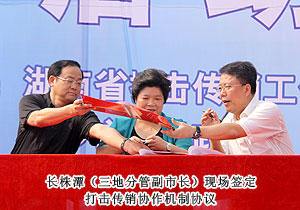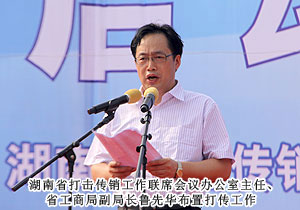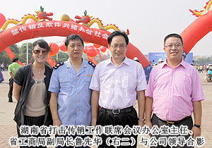 活動(dòng)現(xiàn)場(chǎng),湖南省打擊傳銷工作聯(lián)席會(huì)議總召集人、湖南省人民政府副省長(zhǎng)劉力偉,湖南省打擊傳銷工作聯(lián)席會(huì)議召集人、省工商局局長(zhǎng)劉國(guó)湘,以及省打擊傳銷工作聯(lián)席會(huì)議成員單位領(lǐng)導(dǎo)和相關(guān)處室負(fù)責(zé)人,省工商局打擊傳銷工作領(lǐng)導(dǎo)小組成員單位負(fù)責(zé)人,長(zhǎng)沙市人民政府、株洲市人民政府、湘潭市人民政府主管打傳工作副市長(zhǎng),長(zhǎng)沙縣工商、公安機(jī)關(guān)執(zhí)法人員代表,企業(yè)、社區(qū)、學(xué)生代表,各大媒體記者共計(jì)2000余人參與活動(dòng)。湖南省打擊傳銷工作聯(lián)席會(huì)議辦公室主任、省工商局副局長(zhǎng)魯先華、湖南省公安廳經(jīng)偵總隊(duì)副總隊(duì)長(zhǎng)劉岳斌分別就湖南省打擊傳銷工作取得的成果與進(jìn)程作報(bào)告,長(zhǎng)沙市人民政府副市長(zhǎng)姚永春作重要工作報(bào)告。長(zhǎng)株潭打擊傳銷協(xié)作機(jī)制簽署協(xié)議現(xiàn)場(chǎng)簽定,綠之韻集團(tuán)胡國(guó)安董事長(zhǎng)作為湖南本土唯一一家獲牌直銷企業(yè)代表宣讀打擊傳銷倡議書,并建議將11月1日定為湖南反傳銷宣傳日。
