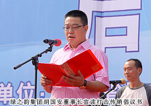 2011年7月28日,綠之韻集團(tuán)響應(yīng)國(guó)家六部委關(guān)于“打擊網(wǎng)絡(luò)違法傳銷”號(hào)召,積極參與到湖南省打擊傳銷專項(xiàng)行動(dòng)中。綠之韻集團(tuán)董事長(zhǎng)胡國(guó)安、董事常務(wù)副總裁勞嘉帶領(lǐng)300余名綠之韻湖南地區(qū)營(yíng)銷伙伴及各事業(yè)部精英參加湖南省打擊(網(wǎng)絡(luò))傳銷違法犯罪暨長(zhǎng)株潭打擊傳銷協(xié)作機(jī)制啟動(dòng)式。