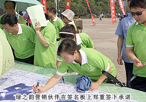 長(zhǎng)沙市星沙通程商業(yè)廣場(chǎng),精彩的表演和直銷法律法規(guī)知識(shí)問(wèn)答吸引了過(guò)往行人的駐足觀看。綠之韻營(yíng)銷伙伴鮮綠的T恤構(gòu)成了一道亮麗的風(fēng)景,他們不但自己仔細(xì)研讀關(guān)于打擊傳銷的宣傳冊(cè),還積極將公司出版的《直銷法律法規(guī)88問(wèn)》免費(fèi)向參會(huì)人員贈(zèng)送。隨著,湖南省打擊傳銷工作聯(lián)席會(huì)議總召集人、湖南省人民政府副省長(zhǎng)劉力偉在會(huì)上宣布專項(xiàng)打擊行動(dòng)正式開始,綠之韻營(yíng)銷伙伴在湖南省打擊(網(wǎng)絡(luò))傳銷違法犯罪專項(xiàng)行動(dòng)萬(wàn)人簽名的巨幅的簽名板上,鄭重地簽下了自己的名字。