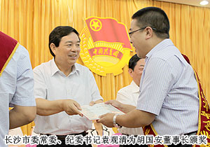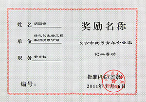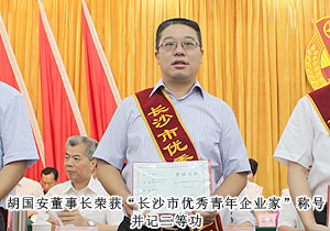 會上,為表彰先進,倡樹典型,長沙市人民政府隆重表彰了“長沙市優(yōu)秀青年企業(yè)家”、“長沙市青年工作先進個人”共20人。胡國安董事長自2010年11月被評為“湖南省優(yōu)秀青年企業(yè)家”并記一等功以來,緊緊圍繞全省黨政工作大局,深入貫徹落實科學(xué)發(fā)展觀,扎實開展創(chuàng)先爭優(yōu)活動,主動貼近,主動融入,主動作為,積極為湖南省經(jīng)濟的發(fā)展貢獻力量。此次表彰中,胡國安董事長榮獲“長沙市優(yōu)秀青年企業(yè)家”稱號,并記二等功。