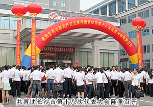 2011年7月18日,共青團長沙市第十八次代表大會在楓林賓館隆重召開。中共湖南省委常委、長沙市委書記陳潤兒,共青團湖南省委書記張值恒,中共長沙市委副書記、長沙市市長張劍飛,中共長沙市委副書記、常務(wù)副市長謝建輝,長沙市人大常委會主任余合泉,長沙市委常委、紀委書記袁觀清等領(lǐng)導(dǎo)及長沙市全體常委出席會議。同時出席會議的還有市委、市人大、市政府、市政協(xié)、市警備區(qū)各條戰(zhàn)線領(lǐng)導(dǎo)代表,以及來自全省14個市州的優(yōu)秀團組織、青年企業(yè)家代表近400人。