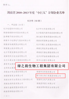 依據(jù)《中華人民共和國(guó)中小企業(yè)促進(jìn)法》,并進(jìn)一步貫徹落實(shí)湖南省委、省政府確定的工業(yè)強(qiáng)省戰(zhàn)略,推進(jìn)“四千工程”和“兩型”社會(huì)建設(shè)的要求,近日,湖南省經(jīng)濟(jì)和信息化委員會(huì)隆重公布了湖南省“小巨人”計(jì)劃和“創(chuàng)業(yè)”計(jì)劃企業(yè)名單,在長(zhǎng)沙市直屬33家“小巨人”計(jì)劃企業(yè)中,綠之韻集團(tuán)榜上有名。