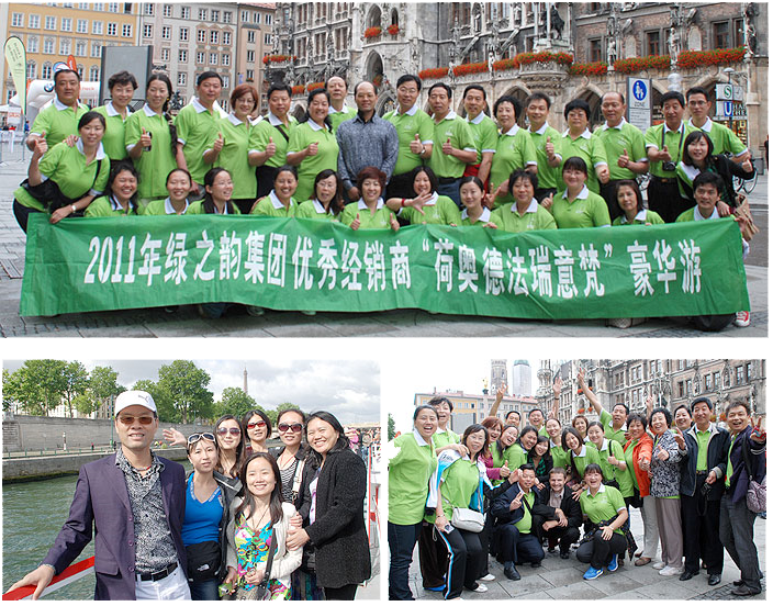 伴隨著綠之韻集團(tuán)八年來穩(wěn)健的發(fā)展,夢想、榮譽(yù)、超越的烙印在每一位綠之韻精英的心靈上留下永不褪色的感動。到世界各地去旅游,是綠之韻給予營銷伙伴的承諾,從國內(nèi)著名的旅游景點(diǎn)出發(fā),到泰國、新加坡、韓國、馬來西亞、迪拜、歐洲,綠之韻伙伴的歡呼聲在越來越多的國度盤旋和傳遞。我們時刻能感受到,伙伴們用滿腔的熱情在愛我們的國,愛我們的家。2011年6月18日—29日,綠之韻2011“荷奧德法意瑞梵”歐洲七國豪華之旅快樂啟程,綠之韻集團(tuán)執(zhí)行總經(jīng)理龔振帶領(lǐng)三十多位營銷精英和總部員工,開啟了相約歐洲的心靈之旅、夢想之旅。