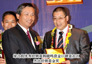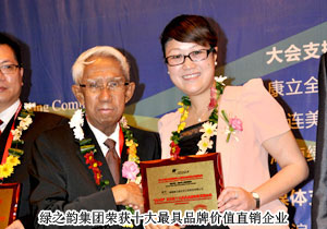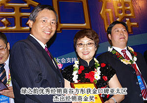 2011年6月13日,第七屆世界華人直銷大會金口碑頒獎盛典在印尼巴厘島隆重開幕。金口碑獎被譽為直銷行業(yè)的奧斯卡,代表了全球直銷人的至高榮譽。至今為止,金口碑頒獎盛典已成功舉辦六屆,造就了一批在直銷領域杰出的代表人物,同時也整合了一批具有創(chuàng)新精神和典范作用的精選案例,傳承發(fā)揚金口碑精神。綠之韻集團董事常務副總裁勞嘉、綠之韻國際集團東南亞股份有限公司運營副總裁李繼前、綠之韻沙棘產(chǎn)業(yè)事業(yè)部總裁王鐵柱、副總裁廖磊以及綠之韻優(yōu)秀高級經(jīng)銷商受邀出席此次盛會。綠之韻集團榮獲十大最具品牌價值直銷企業(yè);綠之韻華興、匯誠系統(tǒng)榮獲卓越系統(tǒng)獎。綠之韻優(yōu)秀經(jīng)銷商谷方彤、韓曉鳴獲金口碑亞太區(qū)杰出經(jīng)銷商金獎,綠之韻沙棘產(chǎn)業(yè)事業(yè)部沙棘系列產(chǎn)品獲十佳名牌產(chǎn)品。