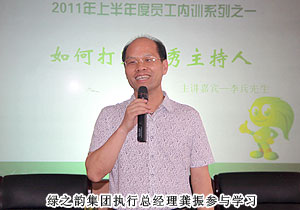 人才的培養(yǎng)對(duì)企業(yè)的發(fā)展至關(guān)重要,為全面提升員工綜合素質(zhì),打造學(xué)習(xí)型的專業(yè)化人才隊(duì)伍,2011年6月15日,綠之韻集團(tuán)2011上半年度員工內(nèi)訓(xùn)系列之“如何打造優(yōu)秀主持人”培訓(xùn)活動(dòng)順利展開。公司特邀湖南衛(wèi)視著名主持人李兵老師擔(dān)任主講嘉賓。綠之韻集團(tuán)總部員工、各下屬企業(yè)員工、各事業(yè)部員工積極參與培訓(xùn)。
