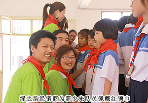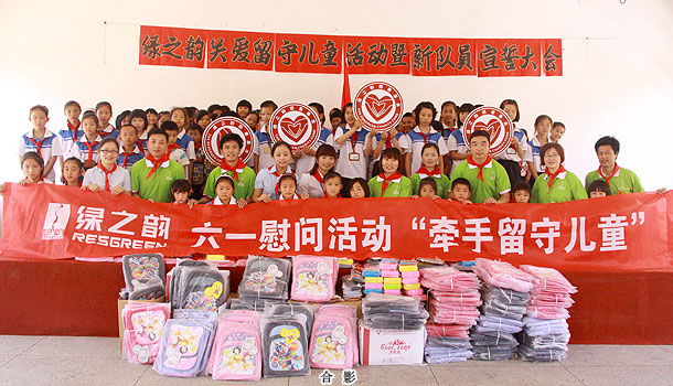 綠之韻集團秉承回饋社會的經(jīng)營理念 ,在發(fā)展中勇于承擔社會責任,從2004年捐助第一所綠之韻老屋希望小學開始就為更多的農(nóng)村孩子提供更多幫助。綠之韻集團一直也關(guān)注著留守兒童這一特殊群體,2011年5月30日,在六一國際兒童即將來臨的時候,綠之韻慈善基金總執(zhí)行戴曉彥號召湖南當?shù)氐膬?yōu)秀經(jīng)銷商們?yōu)槔衔菹MW的孩子們送上了六一節(jié)的禮物。綠之韻集團董事常務副總裁勞嘉代表集團領導及員工慰問了綠之韻老屋希望小學的留守兒童,并發(fā)表了講話,鼓勵孩子們要努力學習,從小學會感恩社會、感恩學校和老師,樹立起遠大的理想,爭做祖國的棟梁之才。在慰問活動中,老屋希望小學還策劃了“紅領巾我為你自豪”的少先隊入隊儀式,綠之韻經(jīng)銷商和員工代表一起參加了神圣而光榮的少先隊員入隊儀式,并榮幸的為新隊員佩戴紅領巾,祝愿新老隊員能相互幫助共同進步。綠之韻老屋希望小學的校長也為綠之韻長期以來關(guān)注教育關(guān)愛青少年兒童的成長表示了真摯的感謝。