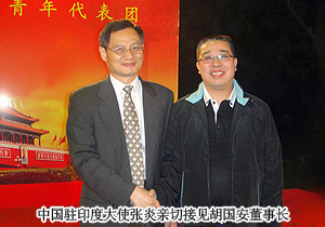 2010年11月15日—25日,應(yīng)印度青年事務(wù)與體育部的邀請(qǐng),以共青團(tuán)中央書記處書記盧雍政為團(tuán)長(zhǎng)的百人中國(guó)青年代表團(tuán)訪問(wèn)印度。代表團(tuán)成員共有100人,包括團(tuán)中央、各部委、各省市和部門的團(tuán)委負(fù)責(zé)人,文化、教育、新聞界青年代表、青年企業(yè)家等。中國(guó)優(yōu)秀民營(yíng)企業(yè)家、湖南省優(yōu)秀青年企業(yè)家、綠之韻集團(tuán)董事長(zhǎng)胡國(guó)安應(yīng)邀隨中國(guó)青年代表團(tuán)同行,并受到中國(guó)駐印度大使張焱的親切接見。
