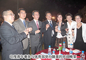 24日晚上,中國(guó)駐印大使館在使館內(nèi)舉行招待會(huì)為代表團(tuán)送行并慶?;顒?dòng)圓滿成功。中國(guó)駐印度大使張炎在招待會(huì)上表示,中印百人青年代表團(tuán)互訪活動(dòng)是由兩國(guó)領(lǐng)導(dǎo)人達(dá)成的一項(xiàng)共識(shí),是兩國(guó)青年開展交流、互相學(xué)習(xí),增進(jìn)友誼與合作的重要平臺(tái),為兩國(guó)友好合作做出了重要貢獻(xiàn)。張炎大使還介紹了近年來(lái)中印兩國(guó)關(guān)系不斷發(fā)展的情況,并表示青年是中印友誼的未來(lái),他希望通過(guò)此次訪問(wèn)能進(jìn)一步加強(qiáng)中印兩國(guó)青年之間的交流與合作。