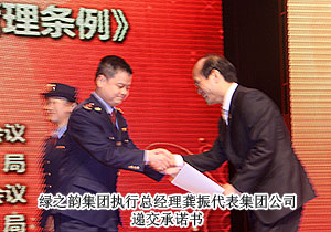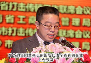 在這個莊嚴(yán)而隆重的舞臺上,以綠之韻集團董事長胡國安等為代表的直銷企業(yè)負(fù)責(zé)人向長沙市工商行政管理局黨組書記、局長陳躍文鄭重遞交守法經(jīng)營承諾書,寓示著各直銷企業(yè)嚴(yán)格自律、共同維護直銷秩序、堅決抵制傳銷的決心。胡國安董事長作為行業(yè)企業(yè)代表發(fā)言,他表示,作為一名企業(yè)公民,綠之韻一定遵循行業(yè)自律的市場規(guī)則,謀求與各直銷企業(yè)共同和諧發(fā)展,同時,作為一名企業(yè)公民,綠之韻也將在企業(yè)治理和道德價值、企業(yè)對人的責(zé)任、企業(yè)對環(huán)境的企業(yè)、企業(yè)發(fā)展中對社會的責(zé)任與貢獻等四個方面承擔(dān)起責(zé)任,認(rèn)真學(xué)習(xí)貫徹兩個條例,嚴(yán)格遵守相關(guān)法律法規(guī),與傳銷劃清界限,以民族直銷企業(yè)為已任,與各直銷企業(yè)及社會各界朋友一起共創(chuàng)美好和諧未來。