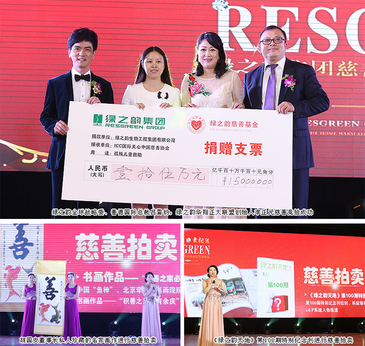 慈善拍賣,所得款項(xiàng)全部捐給國(guó)際關(guān)心中國(guó)慈善協(xié)會(huì)(簡(jiǎn)稱ICC),是本次慈善名流晚宴的一大亮點(diǎn)。晚宴上,胡國(guó)安董事長(zhǎng)慷慨捐出私人珍藏的當(dāng)代著名書畫家陳洪作品《積善之家必有魚慶》進(jìn)行慈善拍賣,被綠之韻全球戰(zhàn)略委、善德國(guó)際總裁呂雷鈞以7萬(wàn)元拍得;現(xiàn)場(chǎng)慈善拍賣的《綠之韻天地》第100期特別紀(jì)念刊拉封及團(tuán)隊(duì)系統(tǒng)報(bào)道版面成為本次活動(dòng)的焦點(diǎn),蒞臨出席晚宴的綠之韻家人們紛紛慷慨解囊、踴躍參加慈善競(jìng)拍?!?000元、20000元、68000元、80000元……”現(xiàn)場(chǎng)的愛(ài)心舉牌競(jìng)拍叫價(jià),此起彼伏,愛(ài)心濃烈。最終,這項(xiàng)拍品以8萬(wàn)元被綠之韻華翔系統(tǒng)正大聯(lián)盟創(chuàng)始人李正元拍得。