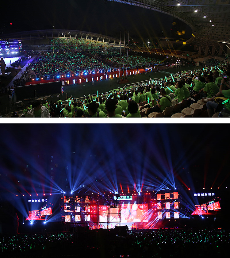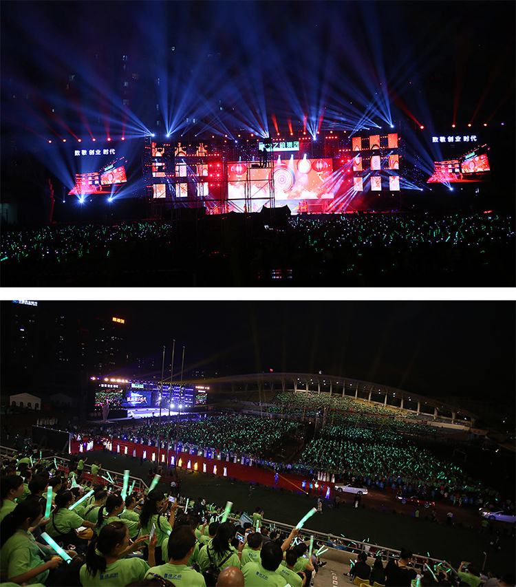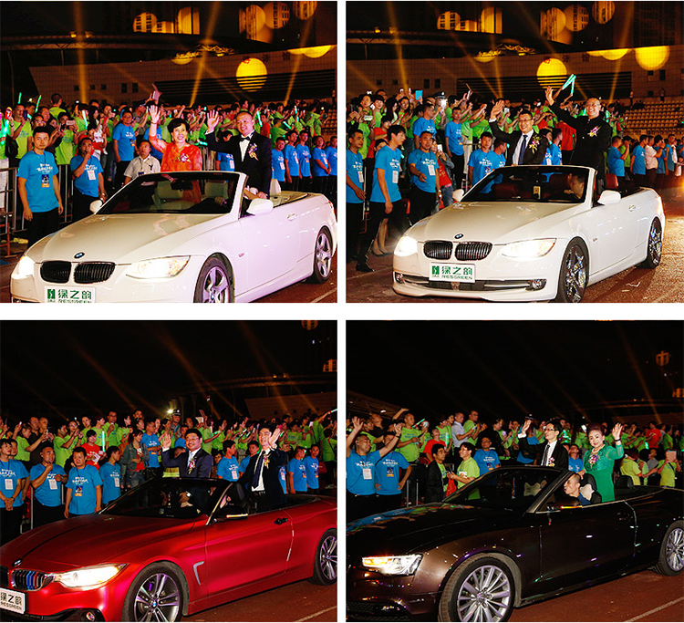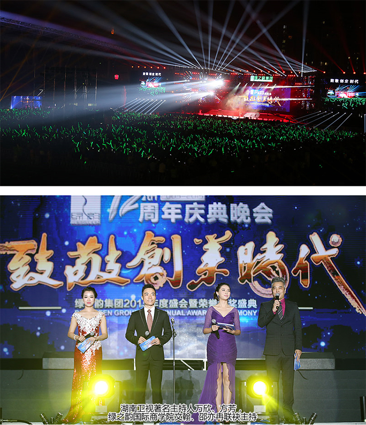 夢(mèng)在當(dāng)下,生逢其時(shí)。綠之韻慶幸遇見(jiàn)這個(gè)偉大的創(chuàng)業(yè)時(shí)代,深諳:創(chuàng)新創(chuàng)業(yè)是不辜負(fù)這個(gè)時(shí)代的最好致敬。偌大的湖南瀏陽(yáng)體育中心,氣勢(shì)磅礴、炫彩奪目的燈光秀中,“致敬創(chuàng)業(yè)時(shí)代”綠之韻集團(tuán)十二周年慶暨榮譽(yù)頒獎(jiǎng)盛典徐徐拉開(kāi)大幕,象征著無(wú)上榮耀的星光大道延伸至中心舞臺(tái),獲獎(jiǎng)嘉賓方陣步伐颯爽英姿、全球策略委委員們乘著豪華跑車(chē)載譽(yù)而來(lái),在15000多名家人目光的聚焦下,揮手致意,共享精彩。本次年會(huì),綠之韻集團(tuán)在同行業(yè)中開(kāi)創(chuàng)萬(wàn)人大會(huì)在線互動(dòng)視頻直播的歷史先河,線上線下大約有30000多名觀眾第一時(shí)間同步觀看了十二周慶盛況,高科技感、信息化充分得以彰顯。