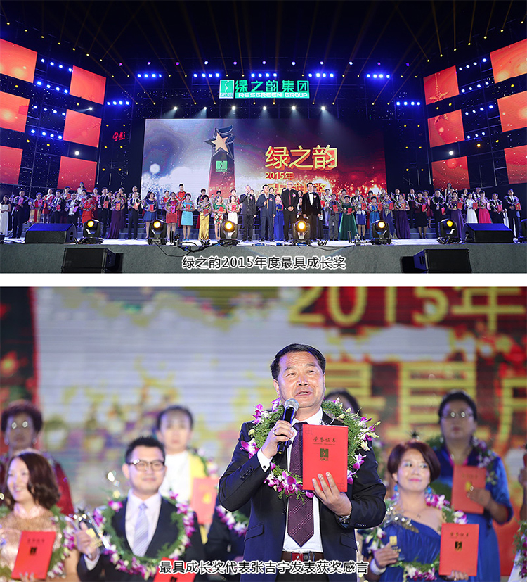 “雛鷹試啼,其聲清越;幼虎初嘯,聲震山林?!本G之韻的發(fā)展壯大,一直在進(jìn)步,一直在成長(zhǎng)的綠之韻人。會(huì)上,綠之韻2015年度最具成長(zhǎng)獎(jiǎng)獲得者一襲盛裝,風(fēng)度翩翩地走上舞臺(tái)接受榮耀,綠之韻集團(tuán)(中國(guó)區(qū))副總經(jīng)理、綠之韻國(guó)際商學(xué)院執(zhí)行院長(zhǎng)孫心琥,綠之韻集團(tuán)全球戰(zhàn)略委、綠之韻低碳執(zhí)行總裁張晉菘頒發(fā)獎(jiǎng)項(xiàng),并致以祝賀。獲獎(jiǎng)經(jīng)銷(xiāo)商代表張吉寧發(fā)表獲獎(jiǎng)感言。