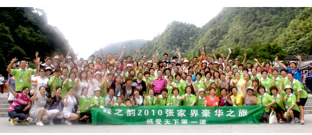 2010年7月29日, 150多名綠之韻中層骨干帶著參加2010年第二屆系統(tǒng)建設(shè)暨中層骨干研討會(huì)收獲新知的喜悅,在董事長(zhǎng)胡國(guó)安的帶領(lǐng)下,展開(kāi)了為期四天的張家界豪華之旅。