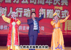 慶典在歡樂與溫馨的氛圍中進行,分銷精英自編自導了精彩的歌曲串燒、功夫扇、快板等特色節(jié)目,遍布全省的各加盟專賣店的店經理也精心準備了一段視頻,總結了吉林分公司為市場做出的貢獻,并表示將永遠陪伴它堅定前行。現場,一群見證了吉林分公司誕生、成長、騰飛的分銷伙伴也登臺分享了自己的成長歷程,樸實的話語、感人的事跡、豐滿的經歷,道出了他們對綠之韻事業(yè)的堅守與執(zhí)著,在吉林分公司的成長與收獲。