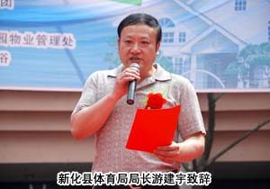 此次活動(dòng)得到了新化縣體育局的大力支持,局長(zhǎng)游建宇出席會(huì)議并作重要講話,同時(shí)蒞臨現(xiàn)場(chǎng)的領(lǐng)導(dǎo)嘉賓還有中共新化縣委常委,宣傳部長(zhǎng)游世友、新化縣人大常委會(huì)副主任曾新華、新化縣公平交易局局長(zhǎng)鄧文斌、新化電視臺(tái)新聞部副部長(zhǎng)游進(jìn)、教育電視臺(tái)副臺(tái)長(zhǎng)劉雄等。湖南地區(qū)重要系統(tǒng)領(lǐng)導(dǎo)人衛(wèi)同俊、黃翔、周書(shū)明、李正元、張新出席會(huì)議。