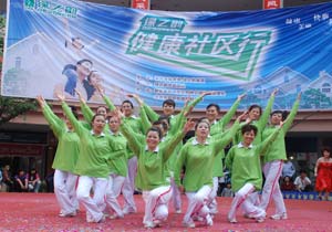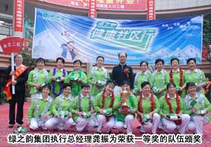 比賽中,十一支參賽隊(duì)伍各盡其能,將綠之韻健康操的精、氣、神舞得淋漓盡致,激發(fā)不少市民邊學(xué)邊跳,全民共舞健康操,在現(xiàn)場(chǎng)留下了許許多多的感動(dòng)和快樂(lè)。同時(shí),快板、拉丁、民族舞等各類(lèi)節(jié)目繽紛上演,圍觀觀眾越聚越多,掌聲歡呼聲也越來(lái)越熱烈。綠之韻集團(tuán)執(zhí)行總經(jīng)理龔振先生在閉幕詞中強(qiáng)調(diào)了此次活動(dòng)的意義,同時(shí)表示:綠之韻健康社區(qū)行為新化百姓提供了健身、娛樂(lè)的平臺(tái),旨在讓每一個(gè)人擁有強(qiáng)健的體魄,綠之韻集團(tuán)將陸續(xù)在全國(guó)開(kāi)展,為百姓謀福祉,為百姓送健康,所有綠之韻人在行動(dòng)!
