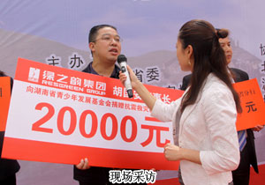 2010年4月28日,湖南省青工戰(zhàn)線抗震救災(zāi)捐款暨圖書(shū)義賣(mài)活動(dòng)在湖南省圖書(shū)館舉行,共青團(tuán)湖南省委副書(shū)記、湖南省青年企業(yè)家協(xié)會(huì)會(huì)長(zhǎng)顏海林、湖南省出版物發(fā)行協(xié)會(huì)會(huì)長(zhǎng)彭國(guó)華、湖南省青少年發(fā)展基金會(huì)常務(wù)副秘書(shū)長(zhǎng)彭韜等相關(guān)省市領(lǐng)導(dǎo)出席。綠之韻集團(tuán)董事長(zhǎng)胡國(guó)安積極參與此次活動(dòng),并在現(xiàn)場(chǎng)以個(gè)人名義再次向玉樹(shù)災(zāi)區(qū)捐贈(zèng)20000元現(xiàn)金。