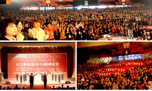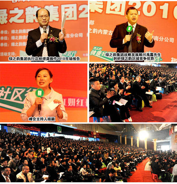 伴隨著虎虎生威的壹零年代,綠之韻也正式邁入了發(fā)展的第七個年頭。2010年3月16日,新一輪學(xué)習(xí)與拼搏的號角吹響,綠之韻集團(tuán)“緊跟時代腳步,創(chuàng)業(yè)就業(yè)共贏”湖南主會場高峰論壇在萬眾矚目中隆重召開。綠之韻集團(tuán)領(lǐng)導(dǎo)層與來自全國的3000余名分銷商齊聚一堂,為永續(xù)經(jīng)營的事業(yè)搖旗吶喊;湖南省工商行政管理局經(jīng)檢總隊總隊長毛愛倫、公平交易局局長袁文球等領(lǐng)導(dǎo)和眾多新聞媒體記者到場祝賀峰會的勝利召開,共享七年發(fā)展帶給所有綠之韻人的榮耀與責(zé)任。