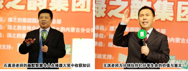 來自祖國的大江南北的綠之韻精英們,中午只做了片刻的休息,仍然保持著積極的狀態(tài)投入到下午的峰會。著名銷售專家,營銷團(tuán)隊建設(shè)管理專家,營銷界的“瘋狂訓(xùn)練大師”、“培訓(xùn)界的趙本山”石真語以其幽默的演講風(fēng)格、敏捷的思維闡述了現(xiàn)代社會的營銷先進(jìn)理念和方法:從人生需要規(guī)劃、世界需要營銷、業(yè)績決定一切三個方面,為廣大分銷商開拓市場打開銷售渠道提供了積極的指導(dǎo)。和諧成功學(xué)創(chuàng)始人、兩性關(guān)系疏導(dǎo)專家、體驗式教練技術(shù)杰出教練王淇在現(xiàn)場通過游戲互動與體驗課程分享事業(yè)成功所必須懂得的智慧和付出的價值。圍繞著綠之韻事業(yè)發(fā)展所帶來的和諧情感和企業(yè)展示出來的希望和力量進(jìn)行了動情演講。綠之韻集團(tuán)總部的員工也在整場峰會中表演了《相信我們會創(chuàng)造奇跡》、《在路上》等精彩節(jié)目。最后,綠之韻集團(tuán)董事長胡國安先生就如何達(dá)到“共贏”、如何帶動“就業(yè)”、如何推動綠之韻事業(yè)穩(wěn)定快速成長發(fā)表講話。胡總在發(fā)言中說:回顧公司從小到大,從無到有,是因為有了相信了力量,才有了所有綠之韻人夢想成真的今天。我們應(yīng)該相信自己,相信自己的選擇和實力,相信自己成長中所有的經(jīng)歷都是我們積蓄力量實現(xiàn)共贏的過程。