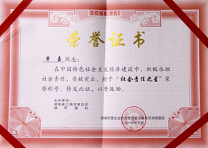 2010年1月21日,由湖南省工商業(yè)聯(lián)合會(huì)、省政協(xié)湘聲報(bào)社聯(lián)合主辦的湖南民營企業(yè)社會(huì)責(zé)任宣言發(fā)布活動(dòng)在瀏陽舉行?;顒?dòng)表彰了一批優(yōu)秀的民營企業(yè)在中國特色主義經(jīng)濟(jì)建設(shè)中積極承擔(dān)社會(huì)責(zé)任所作出的貢獻(xiàn),綠之韻集團(tuán)董事常務(wù)副總經(jīng)理勞嘉被授予“社會(huì)責(zé)任之星”榮譽(yù)稱號(hào)。