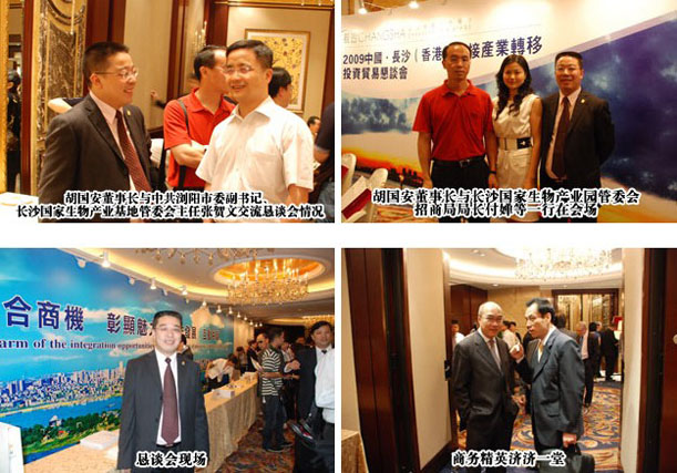 2009年5月18-20日,2009中國・長沙(香港)承接產(chǎn)業(yè)轉(zhuǎn)移投資貿(mào)易懇談會在香港舉行。胡國安董事長應(yīng)長沙市政府邀請,出席此次懇談會。會上,長沙代表團(tuán)發(fā)布的總投資達(dá)230.4億美元的80個(gè)重大項(xiàng)目,引起與會300多位香港各界名流的廣泛關(guān)注。中共長沙市委副書記、市長張劍飛和與會嘉賓代表共同推動了象征加快發(fā)展的“引擎”,喻示著長沙與香港的經(jīng)貿(mào)合作從此進(jìn)入“快車道”。