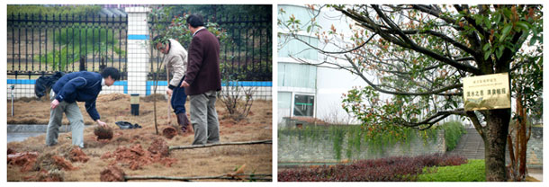 在大家的齊心合力下,又一片綠色的小樹林成長起來。在返回公司總部辦公樓的途中,我們還看到,為紀(jì)念綠之韻集團(tuán)成立三周年時(shí)種下的掛有“飲水思源”牌匾的樹在春雨的澆灌下顯得更加欣欣向榮。