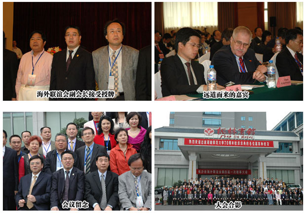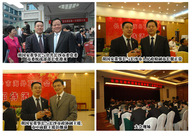 2008年10月23日上午9時(shí)整,長(zhǎng)沙市海外聯(lián)誼會(huì)第四屆一次理事大會(huì)在楓林賓館隆重舉行,來(lái)自全國(guó)包括香港、澳門(mén)、臺(tái)灣以及海內(nèi)外華商華僑在內(nèi)的283名理事出席了會(huì)議。湖南省委常委、長(zhǎng)沙市委書(shū)記陳潤(rùn)兒,湖南省委統(tǒng)戰(zhàn)部副部長(zhǎng)蔡建和到會(huì)祝賀并發(fā)表講話,幾十個(gè)國(guó)家和地區(qū)的海外聯(lián)誼會(huì)、商會(huì)發(fā)來(lái)賀電。