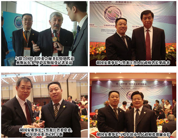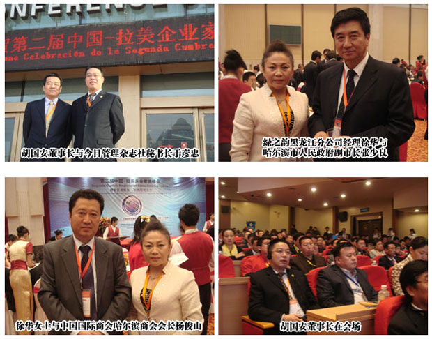 由中國(guó)國(guó)際貿(mào)易促進(jìn)委員會(huì)、黑龍江省政府、哈爾濱市政府聯(lián)合主辦的第二屆“中國(guó)拉美企業(yè)家高峰會(huì)”,20日上午在哈爾濱國(guó)際會(huì)議中心環(huán)球劇場(chǎng)開幕。本次峰會(huì)的主題是“創(chuàng)新貿(mào)易服務(wù)、加強(qiáng)區(qū)域合作”,綠之韻集團(tuán)董事長(zhǎng)兼總裁胡國(guó)安先生及綠之韻黑龍江分公司經(jīng)理徐華女士等應(yīng)邀出席此次峰會(huì)。