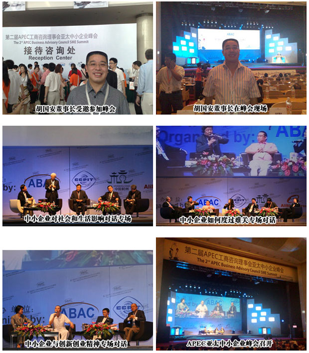 2008年8月2日—3日,由APEC工商咨詢理事會(huì)、中國國際貿(mào)易促進(jìn)委員會(huì)、杭州市人民政府、阿里巴巴集團(tuán)聯(lián)合主辦的第二屆APEC工商咨詢理事會(huì)亞太中小企業(yè)峰會(huì),在浙江省人民大會(huì)堂盛大開幕。綠之韻集團(tuán)董事長兼總裁胡國安受邀參加此次峰會(huì),與來自亞太地區(qū)21個(gè)成員國的APEC工商咨詢理事會(huì)企業(yè)家代表,海內(nèi)外商業(yè)精英都齊聚杭州,共商中小企業(yè)發(fā)展的未來。