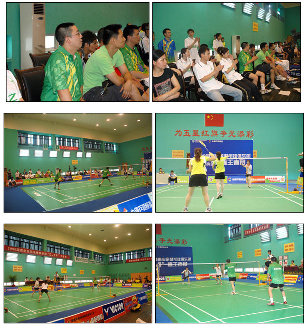 為迎接奧運圣火入湘,弘揚奧林匹克精神,加強全民健身活動,綠之韻集團出資組建了一個由公安、交警、工商、銀行等各單位精英組成的綠之韻羽毛球俱樂部,這支羽毛球俱樂部隊代表綠之韻集團參加了由湖南省體委舉辦的湖南省“迎奧運”首屆業(yè)余羽毛球俱樂部王者賽。綠之韻集團派出員工啦啦隊到比賽現(xiàn)場加油助陣,胡國安董事長以及勞嘉常務(wù)副總也親臨現(xiàn)場觀摩比賽的精彩盛況。